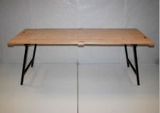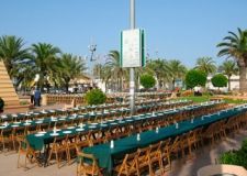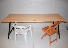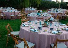 Las mesas son también de madera con las patas plegables incorporadas. Tienen capacidad para 6, 8 o 10 sillas dependiendo del modelo y la disposición que les demos. Así mismo, contamos con mesas redondas de 1'80 cm. de diámetro y también mesas rectangulares de 70x70, con servicio opcional de mantel Dunicel.
